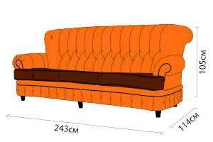 Также диван оборудован механизмом раскладывания «французская раскладушка», что позволит использовать его в качестве спального места для гостей. По желанию клиента диван комплектуется банкеткой и креслом "Лувр".