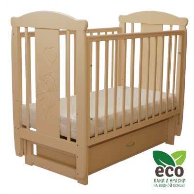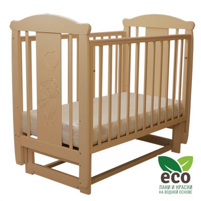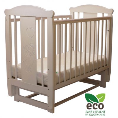Кроватка "Соня 04" имеет механизм качания поперечный маятник. Механизм качания фиксируется. Возможен вариант с ящиком.
