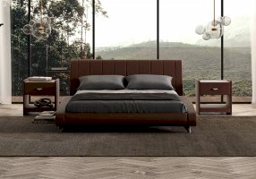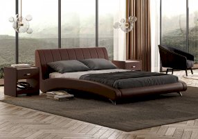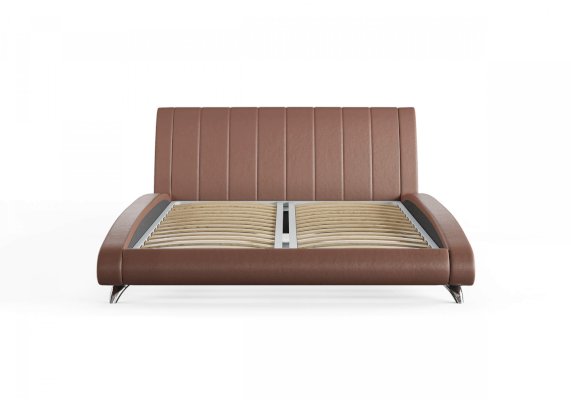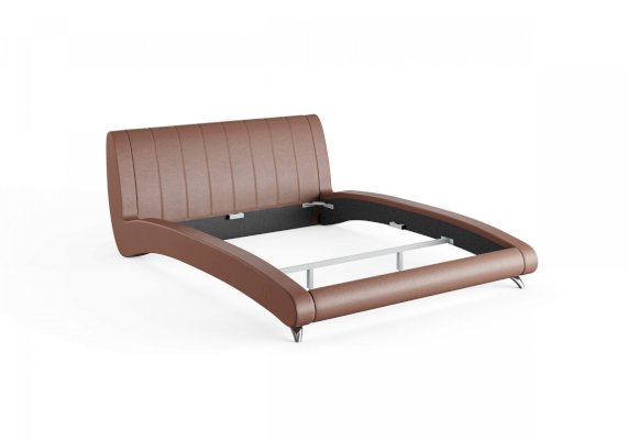 Элегантная интерьерная кровать. Модель изготовлена из ДСП. Обратная сторона изголовья обита спандбондом, но, при желании, её можно выполнить из основного обивочного материала. В комплект кровати входит кроватное основание. Каркас основания выполнен из металла, ламели - из берёзы.
