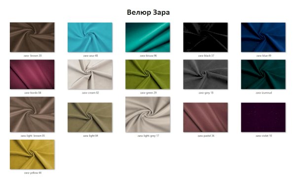 | Цвет | БЕЖЕВЫЙ / БЕЛЫЙ / ГОЛУБОЙ / ЖЕЛТЫЙ / ЗЕЛЕНЫЙ / КОРИЧНЕВЫЙ / КРАСНЫЙ / ОРАНЖЕВЫЙ / РОЗОВЫЙ / САЛАТОВЫЙ / СЕРЫЙ / СИНИЙ / СИРЕНЕВЫЙ / ЧЕРНЫЙ / КОФЕ |