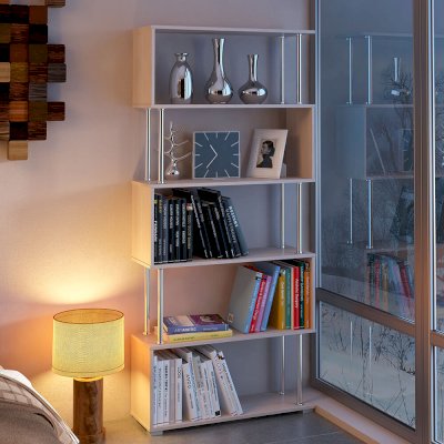 Стеллаж 850 – очень вместительный и при этом визуально легкий предмет интерьера. На нем вы можете разместить все необходимые вещи, включая книги, предметы декора, домашние цветы или фотографии. Невесомости основным полкам стеллажа придают хромированные штанги.