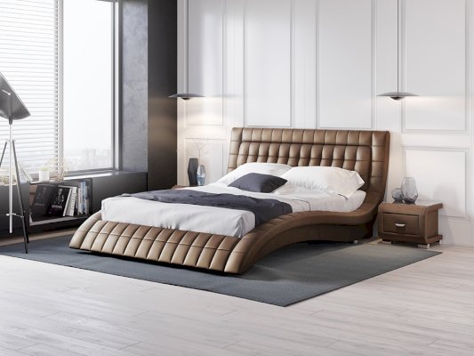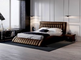 Одного взгляда на эту кровать достаточно, чтобы понять: перед вами настоящее произведение искусства. Плавные природные линии корпуса, расслабляют, моментально настраивают на отдых, манят словно магнит: «Ляг, полежи, ощути легкость, покачайся на волнах безмятежности». Высокое мягкое изголовье с аккуратным геометрическим орнаментом лишь подчеркивает ее изящество и стать, сопротивляться этому бьющему в глаза обаянию становится совсем невозможно.