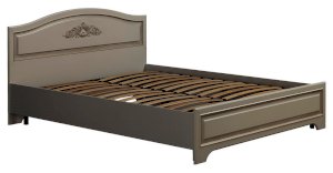 Кровать оснащена ортопедическим основанием, которое обеспечит здоровый и крепкий сон. Спинки кровати украшены объемным декоративным элементом и фрезеровкой с патиной. Матрас приобретается отдельно.