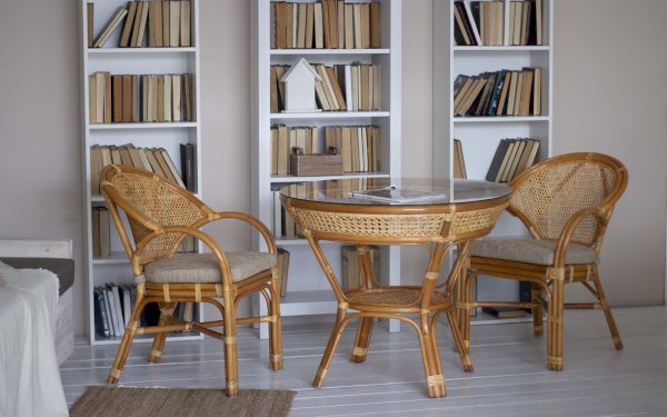 Стол из натурального ротанга ручной работы.
