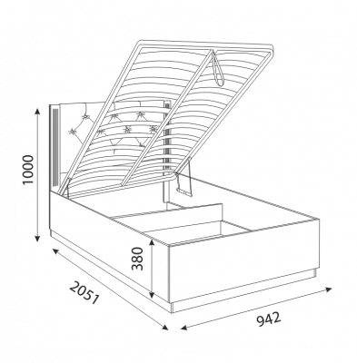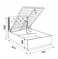 • Основание спального места вместе с матрацом, благодаря газ лифтам можно легко приподнять и получить доступ к огромному пространству для хранения