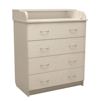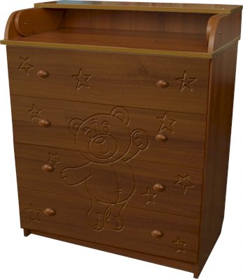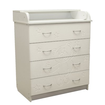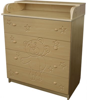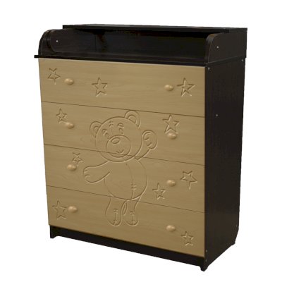 Вам понравится привлекательный внешний вид детского комода. На его лицевой части вы увидите углубленный декор в виде Мишки.