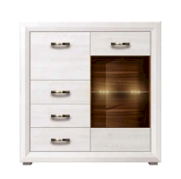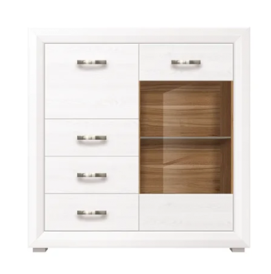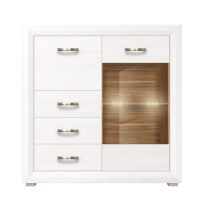 Большое отделение с частично застекленной дверью внутри оснащено стеклянной полкой.