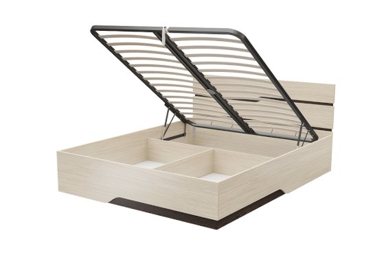Кровать имеет встроенное основание с подъёмным механизмом, которое даёт доступ к просторным отделениям для постельных принадлежностей.