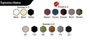 Материалы ЛДСП / ЭКОКОЖА / ТКАНЬ / ХРОМИРОВАННЫЕ НОГИ