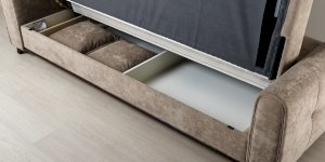 Выполнен в модном мягком велюре ROMANCE оригинальной фактуры. Ткань легко чистится, устойчива к зацепам, обладает повышенной износостойкостью. Благодаря особой технологии гладкого крашения Frozen Flower на поверхности ткани присутствует легкий краш–эффект, подчеркивающий невероятно мягкую фактуру ткани.
