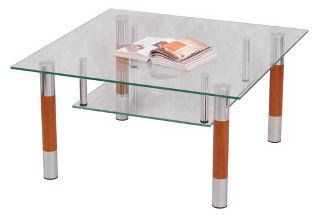 Журнальный стол - стеклянная квадратная столешница с полкой, ножки комбинированные с фетровыми подпятниками.