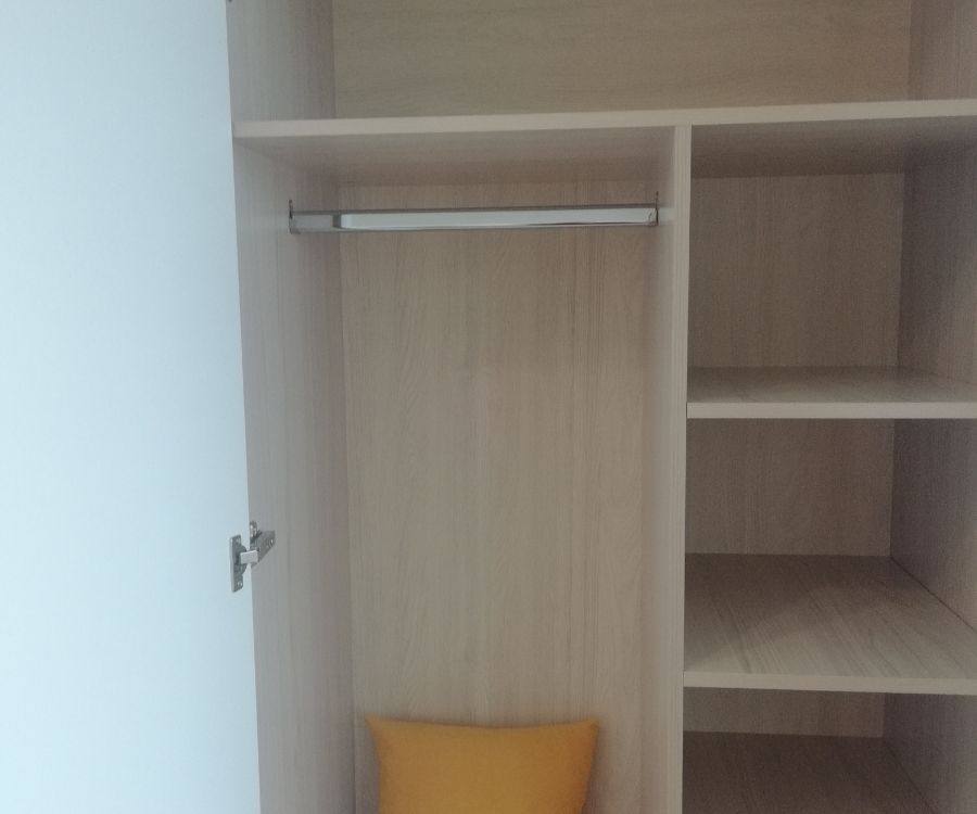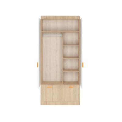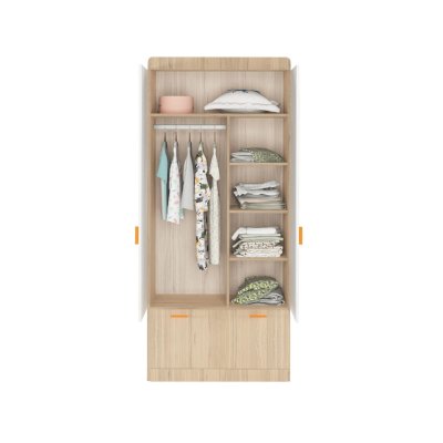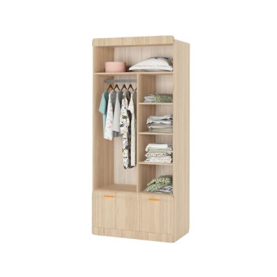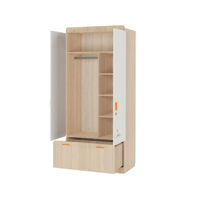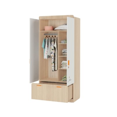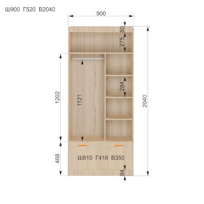 Наполнение: выдвижной ящик на шариковых направляющих глубиной 450 мм, петли с доводчиком, штанга для одежды, полки