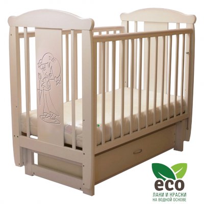 Кроватка "Соня 04" имеет механизм качания поперечный маятник. Механизм качания фиксируется. Возможен вариант с ящиком.