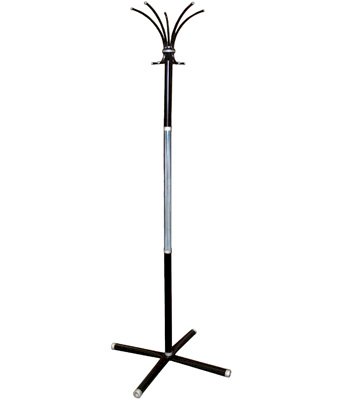 Крючки и основание вешалки напольной выполнены из  серого металлика. Идеально вписывается в интерьер современного офиса. Вешалка поставляется в картонной таре, в разобранном виде, снабжена подставкой и держателем для зонтов.