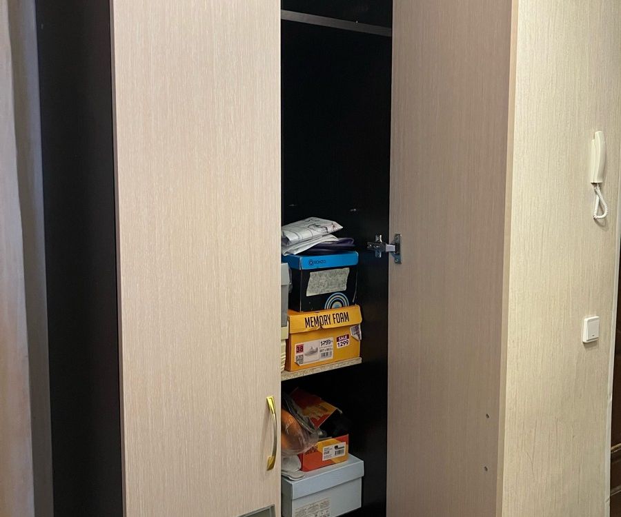 Подбирали шкаф под размеры проема в стене, идеально вписался