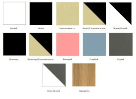 Цвета: белый, слоновая кость, венге, венге/слоновая кость, венге/белый, шоколад, шоколад/слоновая кость, розовый, голубой, серый, серо-белый, карамель