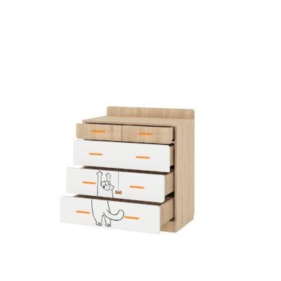 Привозят в разобранном виде - упаковано на отлично. При распаковке минимум запаха и стружки древесной. Сборка своими силами без проблем - все отверстия на месте, крепежа с запасом. Направляющие без доводчиков, хлипенькие (соответствуют цене комода). Но свою работу пока выполняют и нареканий к ним нет. В комплекте ручки 2х цветов (оранжевые и мятные). Ящики внутри 37х71х16 см. Белая плёнка, покрывающая фасады, тонкая и фактурная (шершавая) - напоминает бумагу. Следы грязных пальцев после установки вытерли влажной тряпкой. Но насколько её хватит в процессе эксплуатации и как будет мыться не понятно, влагостойкой не выглядит. Резюмируя - и родители и ребёнок довольны.